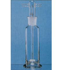 BOTTIGLIE PER LAVAGGIO GAS SECONDO DRECHSEL, COMPLETE DI PESCANTE, CONO NORMALIZZATO NS 29/32,VETRO BOROSILICATO.